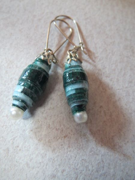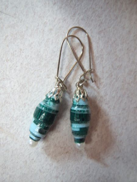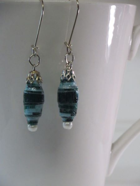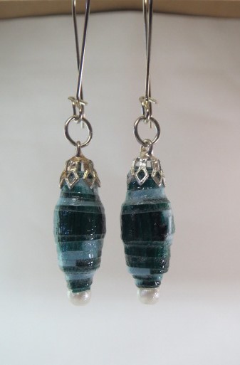HAND MADE PAPER BEAD Necklace blue and silver$25.00