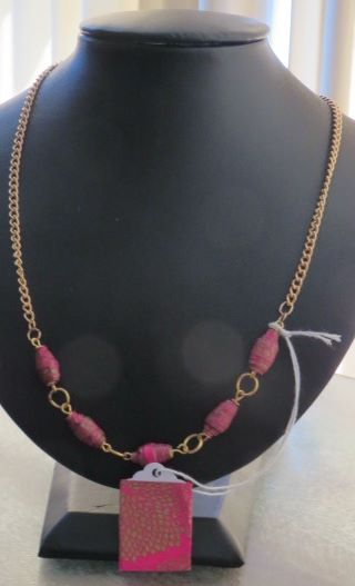 HAND MADE PAPER BEAD with Pink Oriental paper$25.00